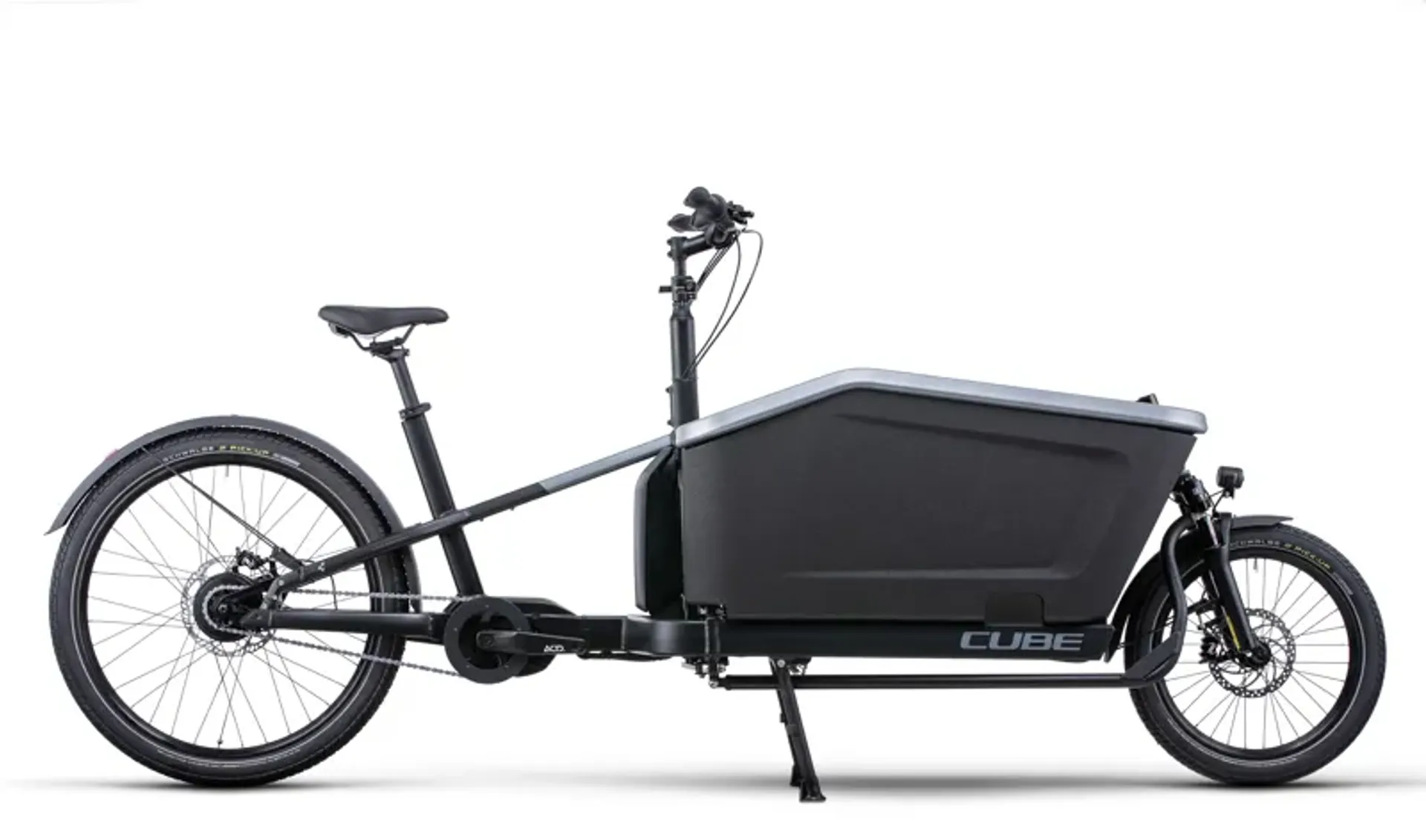 Bosch's fourth-generation Cargo Line drive works with an easy-to-use, stepless hub gear system to make light work of any journey. Big-volume Schwalbe tyres provide reassuring grip, there's a cargo-specific Suntour suspension fork up front for extra comfort, and powerful Magura hydraulic disc brakes serve up safe stopping in any weather. The EPP foam cargo box provides a safe, stable and adaptable home for whatever you're carrying. The Speedlifter handlebar setup means it's quick and easy to set up for any rider. And included accessories like mudguards, a kickstand, and front and rear LED lights mean you're all set.