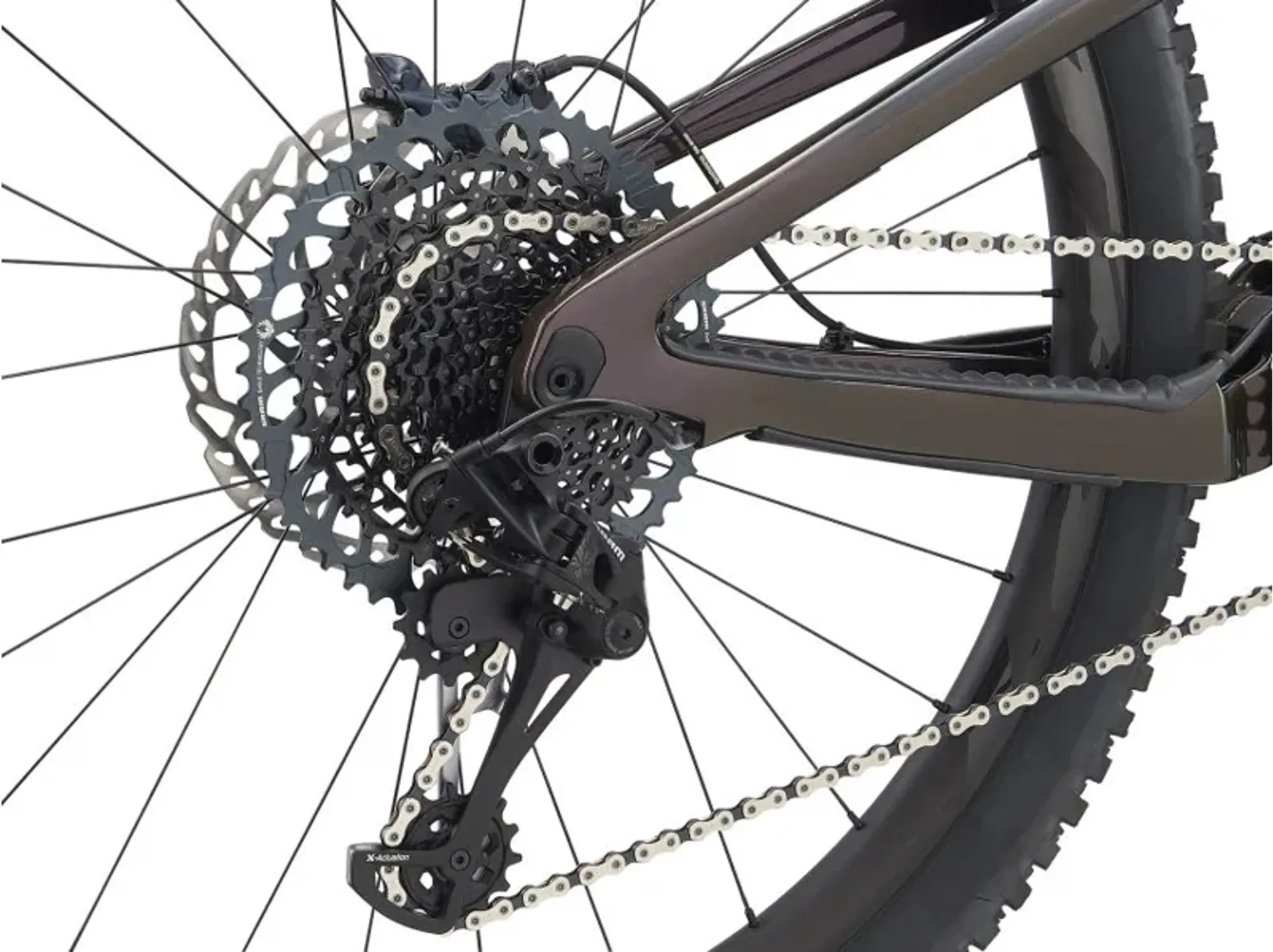 We engineered the geometry of the Advanced composite frame and swingarm around larger diameter 29-inch wheels. That means shorter chainstays, a longer toptube, and just the right angles with the headtube (64.56 degrees) and seattube (76.36 degrees). We gave it an updated Maestro rear suspension system with 146mm of travel. The trunnion mount shock and Advanced Forged Composite rocker arm deliver an active, super plush feel on the trail. Other features including a cleanly routed dropper seatpost and a new Giant WheelSystem with Boost hub spacing and tubeless tyres complete this race-ready package.